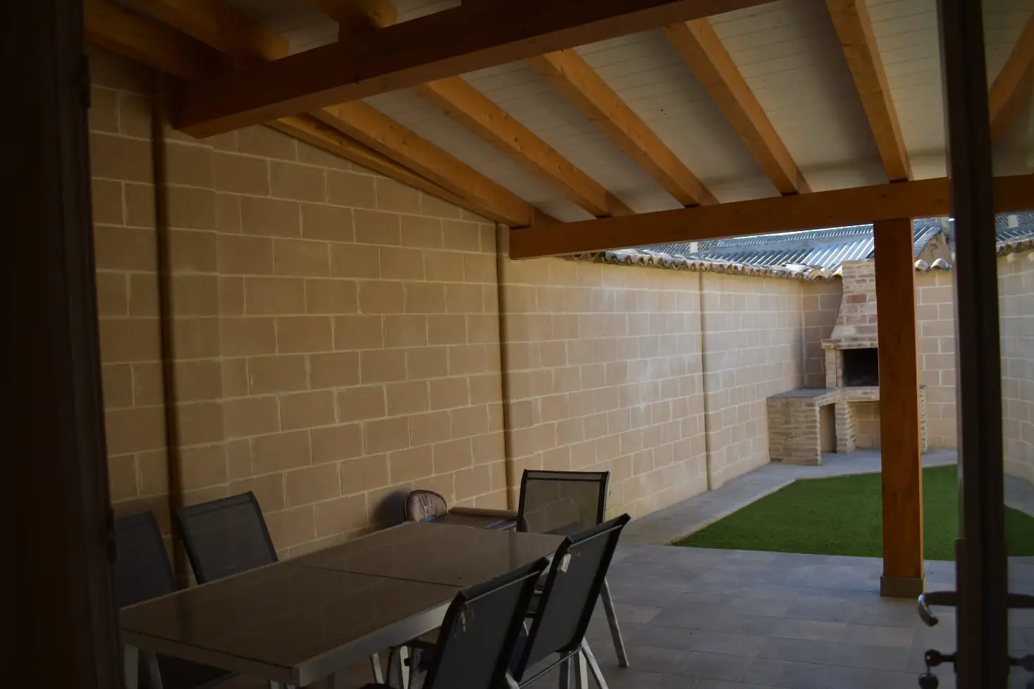 Patio exterior con barbacoa, ideal para disfrutar del aire libre y comidas al sol.